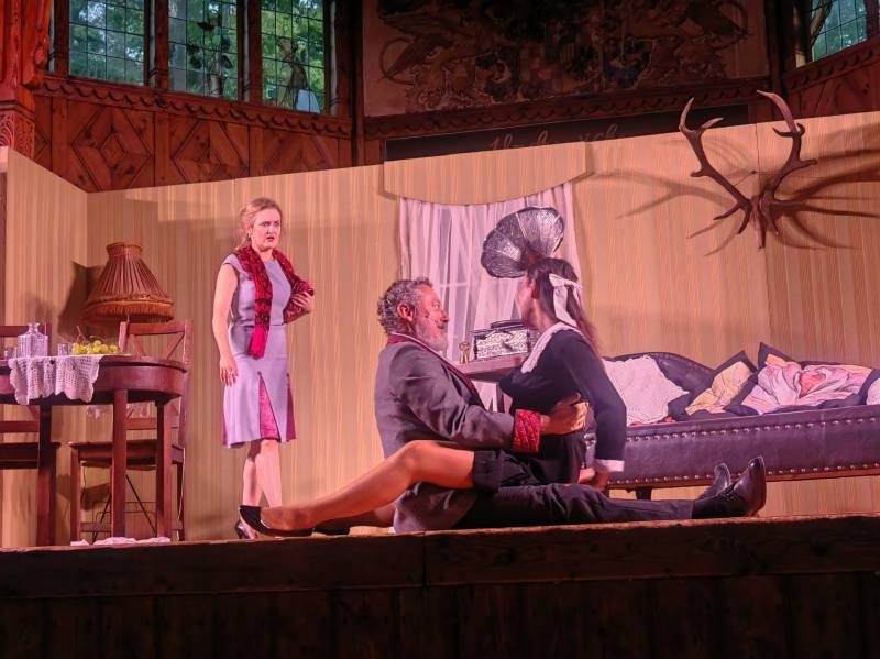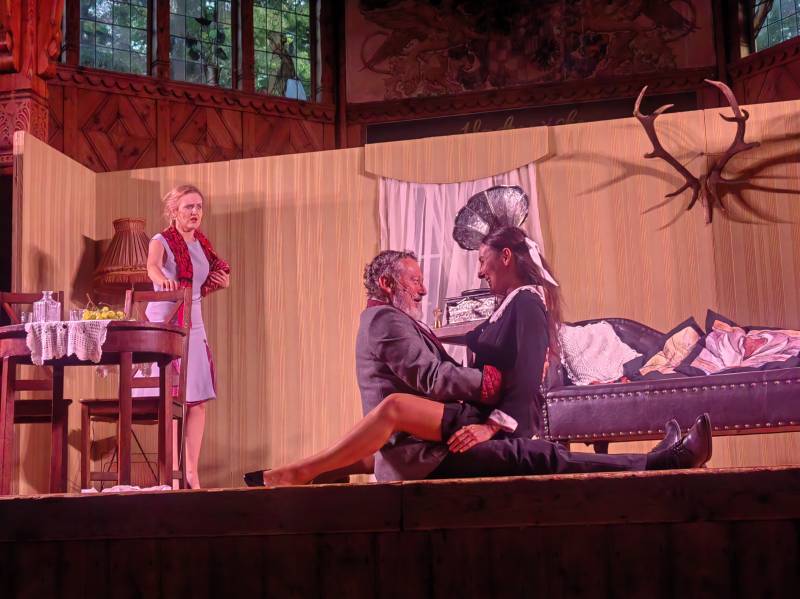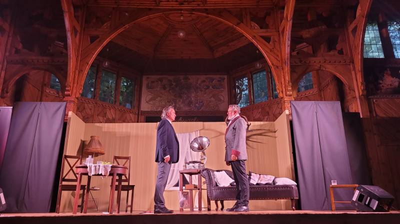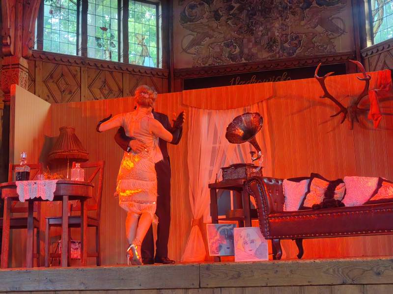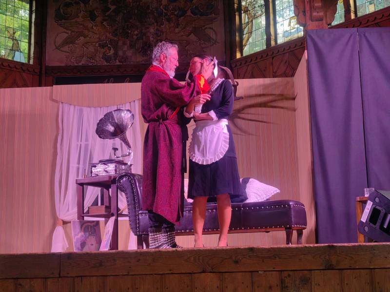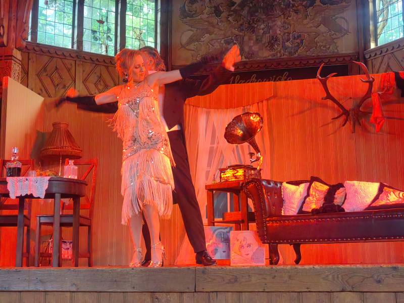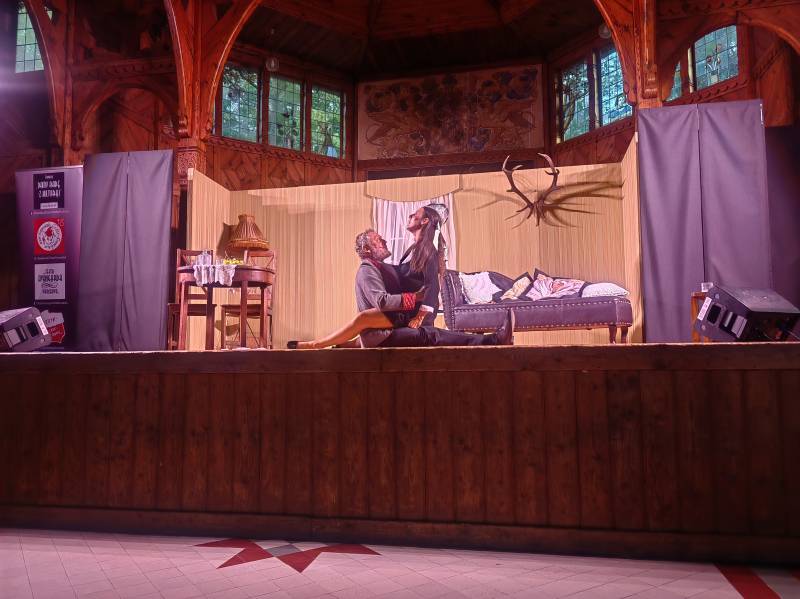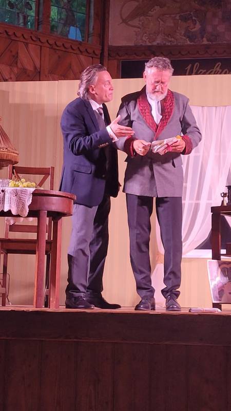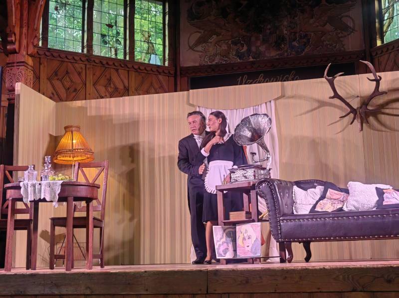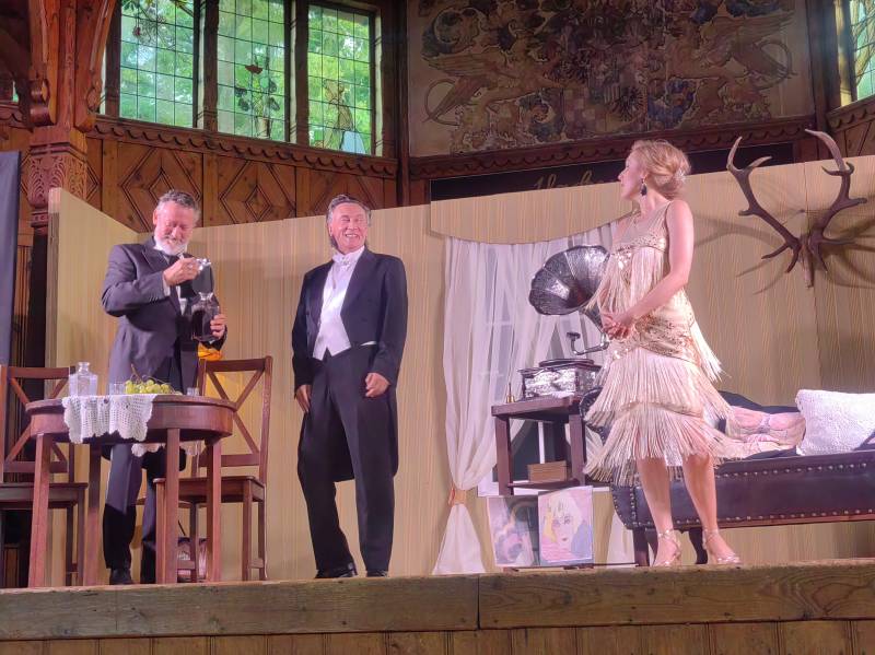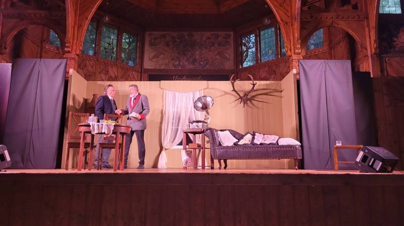 Znakomita obsada w składzie: Natalia Pietrasz, Aneta Gierat, Maciej Luśnia i Jan Korwin-Kochanowski, przeniosła nas do lat 20. ubiegłego stulecia i zawiłych romansów… Wszak napisany przez zaledwie dwudziestokilkuletniego Aleksandra Fredrę tekst sztuki w trzech aktach wierszem – o niewiernej Elwirze, o jej szukającym miłosnych uniesień mężu Wacławie, o kochanku Alfredzie oraz o całą te trójkę wodzącej za nos pokojówki Justysi – spotkał się z ogromnym zainteresowaniem zgromadzonej publiczności, a owacji na stojąco nie było końca. Głównymi atutami wystawionej sztuki „Mąż i Żona” byli znakomici aktorzy z Krakowa oraz przedni humor przenikający kunsztowne poetyckie frazy. Kto nie był z nami, niech żałuje…