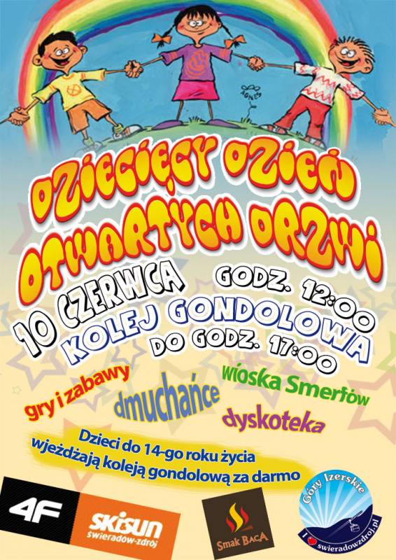 Zapraszamy Państwa do udzialu w imprezie z okazji Dnia Dziecka, która odbędzie się 10 czerwca br. od godz. 12.00 do 17.00 w ośrodku SKI&SUN Świeradów-Zdrój - kolej gondolowa.
